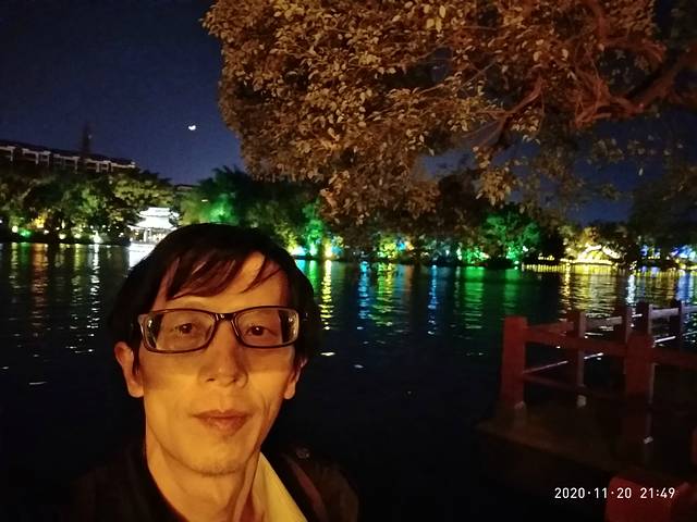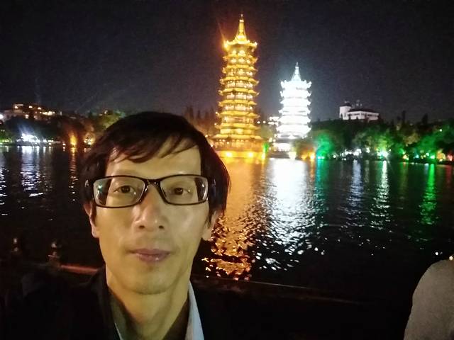 近下午六点到达,转机场大巴到民航大厦做的士掋尚水美食街住处,在出租车上和司机聊天,谈桂林风景,一路上介绍美景什么象山,解放桥,晚上灯光映照下格外漂亮,心中充满期待。在青旅偶遇一桂林理工学生,晚上结伴而行共同游玩。步行街可能因疫情缘故,人不太多也安全,街面灯火通明,游人来往,四通八达,商业业态繁华,我们无心欣赏,吃份米粉就去逛两江四湖景区 了。夜晚下漓江水幽静温柔,在柔和光线下呈现不同着色,火树银花,浪漫意境,沿江边行走,微风拂过,色彩变化多样,展现漓江风采,驻足许久不想走开,从漓江去四湖,那里则更美,更耀眼,更华丽,人则更多,湖边小道,环湖而行,时而上,时而下,时而拐,时而错,掩映在绿树中,人丛中。日月双塔座落湖中,在灯光反射下倒影合璧,美轮美奂,湖上游船来往反复,忽明忽亮,黑夜在如此的环境下变得通透了,光显了,委婉了,我们的神情停止了,震慑了。从杉湖到桂湖,风景这边独好,一路风景一路欢笑。湖连桥桥挨湖船行湖湖中塔塔周树树上光,城中有景景中含城城里有湖湖有双塔,山水与城市融为一体,幸福与绿色相交融,堪为上乘。更为独特是四湖景区深夜之时灯光稀少,环保先行,低碳而动。