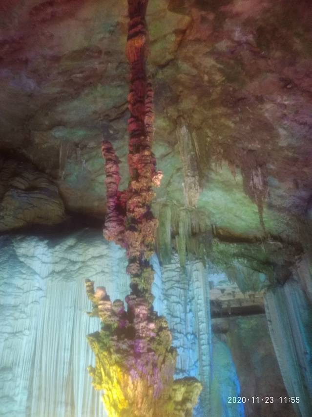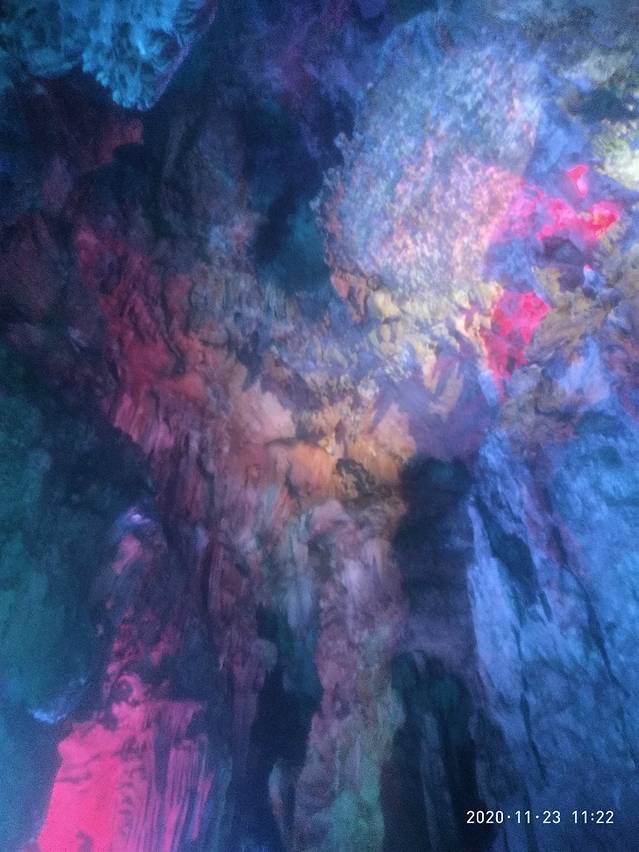 银子岩熔洞如同芦笛岩一样,只是规模,形成,造型,年限,结构不同,它在半山腰上,有点高瞻远瞩之想,对于我们这些外行只是惊叹鬼斧神工的奥妙无穷了。洞内曲径通幽,怪石嶙峋,造型各一,逼真而形象,时而直冲云霄,时而从天而降,时而拔地而起,时而卧虎藏龙,时而狭窄,时而宽敞,时而明亮,时而昏暗,我们欣赏与小心相并存。洞内钟乳石与灯光配合,显得交相辉映,维妙维肖,让人走入童话与梦想世界,光,钟乳,身形,空间,温度,多位一体,凝聚这大自然的力量与感恩,一个多小时的多角度更深度极用心观赏呤听这画面,美不胜收。从半山腰进从半山腰出这才是圆满,不同凡响,与芦笛岩更胜一筹。