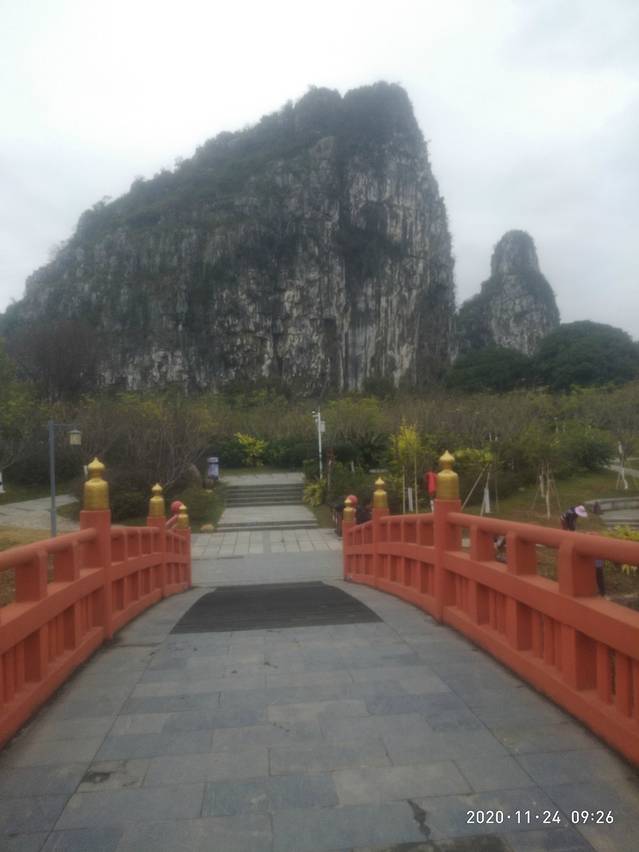 桂林南溪山公园,城市内休闲游玩地方,值得一去,登高望远一览众山小,浏览桂林佳处。门脸不大内含却丰富,由其是盘山小径在如此冻人环境中,让人温暖兴奋。沿着小径向上,路遇几个特别景点,山中洞,洞内肯定不简单,奇异之处,可惜上锁,山中像,犹如映在山中,天然形成,层次感特强,一路上顶,中空平台上锻炼者学习者休闲者有之,不凡之人。站在山顶,山水之城,环境之城,绿色之城尽现眸中,群山在脚下在身旁在眼前,如此之美何也。从另一条小路下去,公园漫步道开始了,多数人休闲生活在此中,沿道环绕一圈,依山傍水,草青树绿,溪水流流,红桥蓝亭,这就是人间烟火🔥。大门处有一小湖,穿梭在整个公园内,是一条纽带联系着。