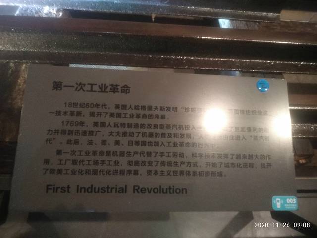 迈入馆内全是机器的时代,机器的原型,机器的工艺,机器反应发展,反应进步,反应人类走过道路。每漫步展台,个个时期人们的聪明才智表现出来的,从无到有,从简单到复杂,从粗糙到精致,日新月异,总离不开勤劳双手创造价值。由其是笨重与大型机器在当时缺乏先进技术和提升设施的情况下,却建造的这样精致与协调,叹为观止了,古人思想胜于我们的。中国第一代蒸汽机头摆放在那里,联想儿时我做火车情形,噗嗤噗嗤,直冒白烟,启动刹车左倒右愰,车厢简单而干净,人满为患,高兴极了,可现在动车高铁飞机,豪华而先进,失去了那时意义,人呢/不能忘本/