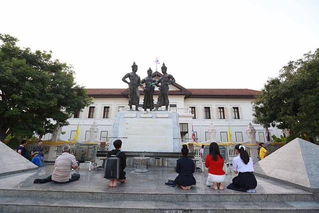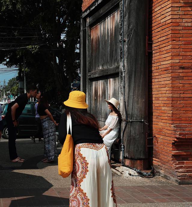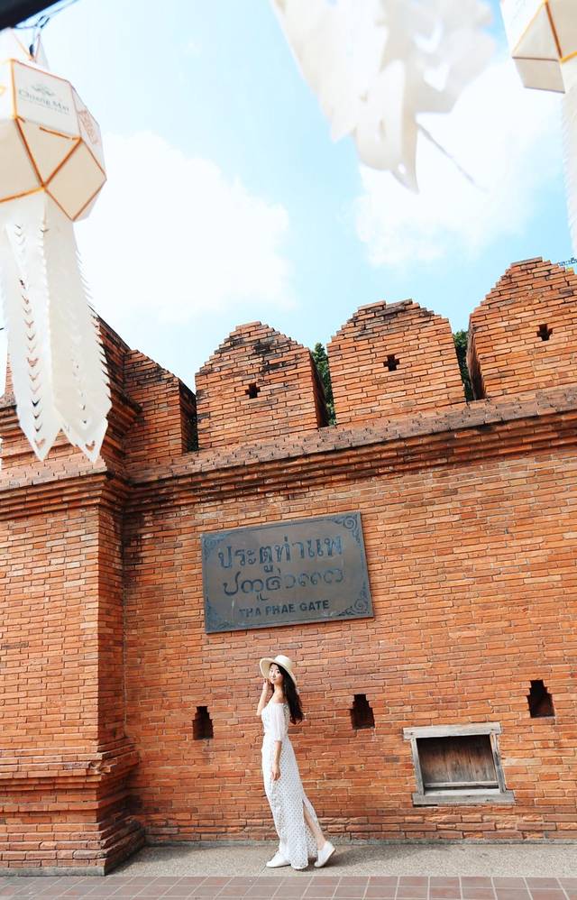 在清迈的日子我们似乎漫无目的,往返于塔佩门内外,随俗点留张路照。除了没有鸽子伴舞其它都好,天灯节的塔佩门比平时更热闹,每一段红墙下小姐姐们都把位置占好。游客打卡照抢时占位实在很重要。