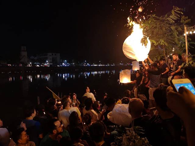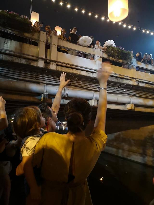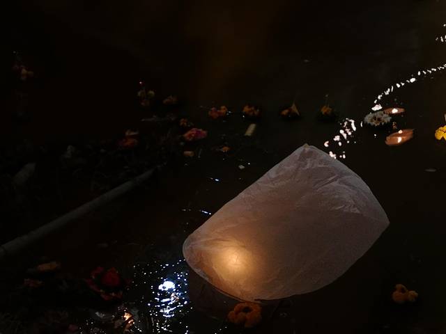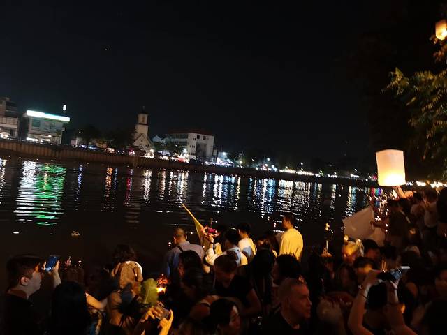 纳瓦拉桥无法通行,湄平河两边挤满了人。更有洒脱的直接在水里放灯。河边没有护栏我一度猜测那些站水里的是不是被挤下水的。不过大家心态都很好,只有一脸欣喜和亢奋。
