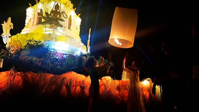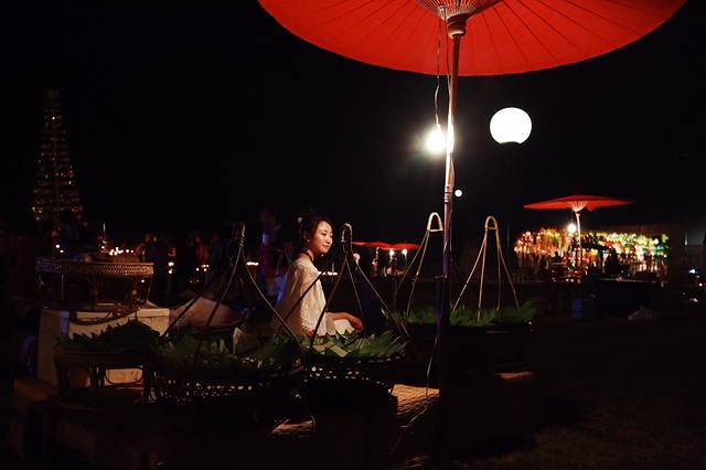 说实话古城内的仪式和想象有距离,三皇纪念碑有点灯祈福活动却没有看到300人的兰纳舞蹈;塔佩门人太多,舞台上的演出基本看不见;花车巡游没有具体时间错过了看帅哥美女。古城仪式在天灯节期间会持续好几天,建议先参与放天灯活动。