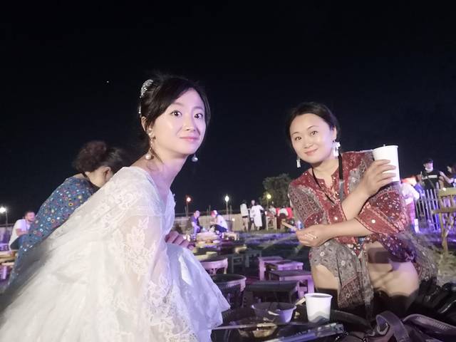看不清楚的舞台上表演一直在继续,一边是歌舞喧嚣一边是人声鼎沸。置身其中的我们怡然自得。