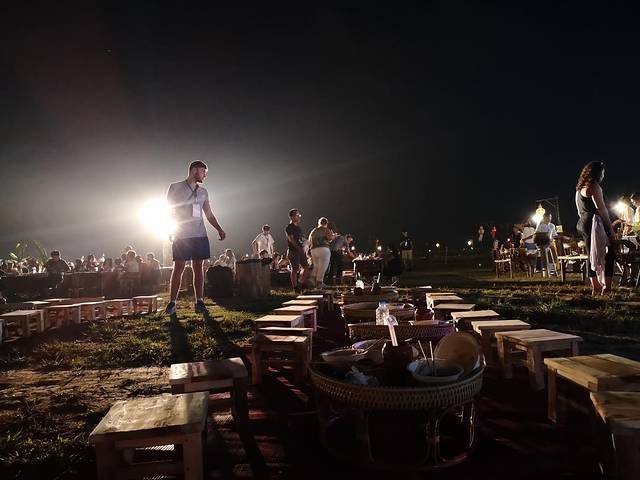 天灯节收费场建议选择接送,因为场地在郊区打车非常不便。购票成功后商家会发送集合时间及地点。马场集合点之一在MAYA商场门口,非常醒目,因为排队的人很多,你只需要找到自己的场地出示上边证明。现场工作人员会安排你出发。
