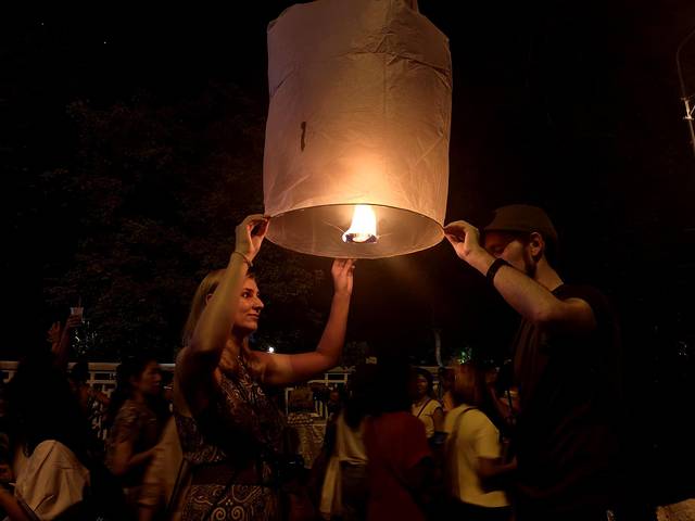 周围放灯的人肤色不同,国籍不同,甚至连故事也不同,可这一刻每一盏天灯之下的我们都有着相同的虔诚。