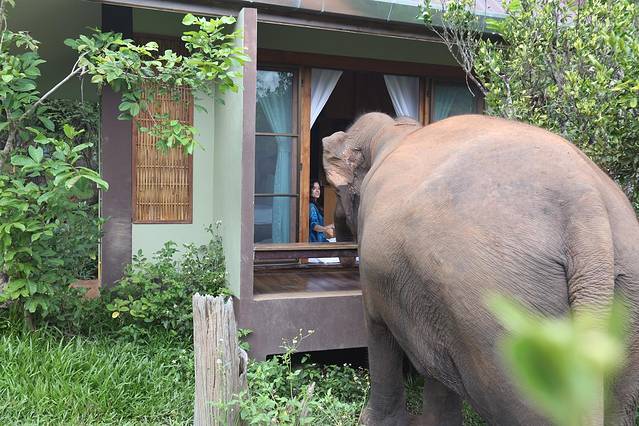如果你能接受它所有住宿缺陷你一定会喜欢上这里。房间条件不好但视野很棒,抬眼就是满眼新绿,大象在窗户下散步,小鸟在枝头唱歌。探头出去就可以和它打招呼,即使它听不懂也会让你在呼唤出一声声大象时开心不已。这时的自己有些傻气又充满童趣。