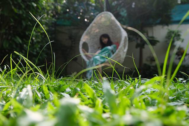 我来时阳光散落在庭院里,茂密的树叶上阳光在跳舞显得格外有活力。这座酒店因一棵树充满魅力。