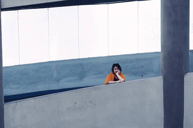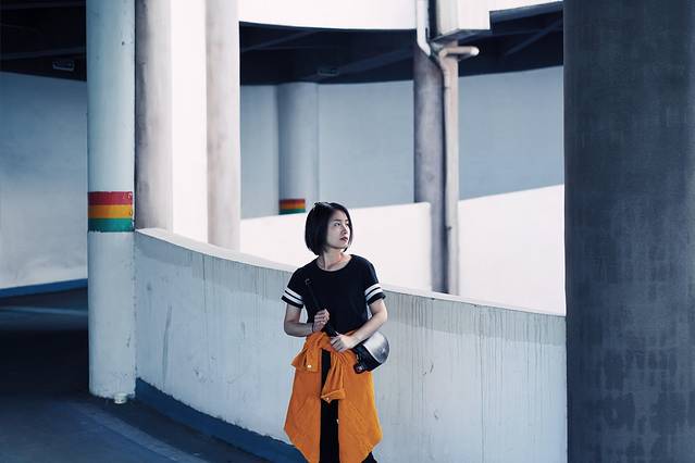 拍摄角度可以有很多种,不局限于一定要让模特站在对面,很多角度都可以拍出层次感。