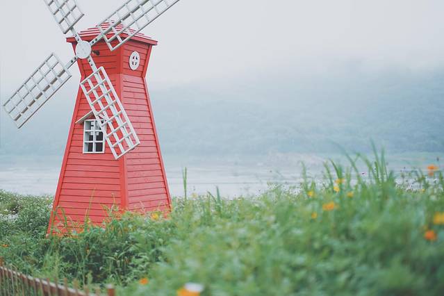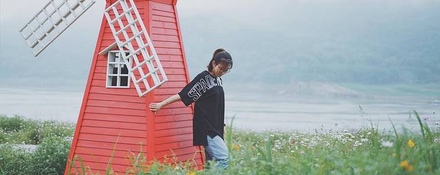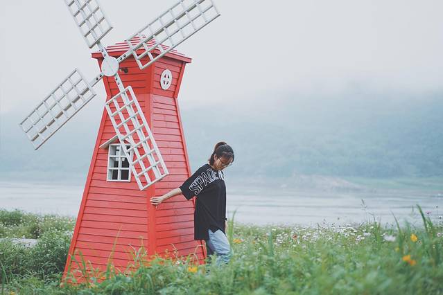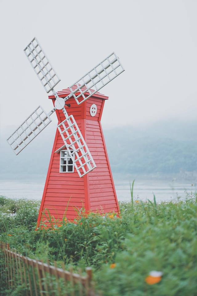 木洞河街是一个江畔古街形式的景区,无需门票,最开始知道这个地方是因为江畔种植了一大片格桑花,非常好看,还有红色的风车衬托,周末格桑花海人还是挺多的,母亲节那天下过雨,人都不少。今天我要着重介绍的其实不是格桑花海,是那里的一处小众秘境-大草原。