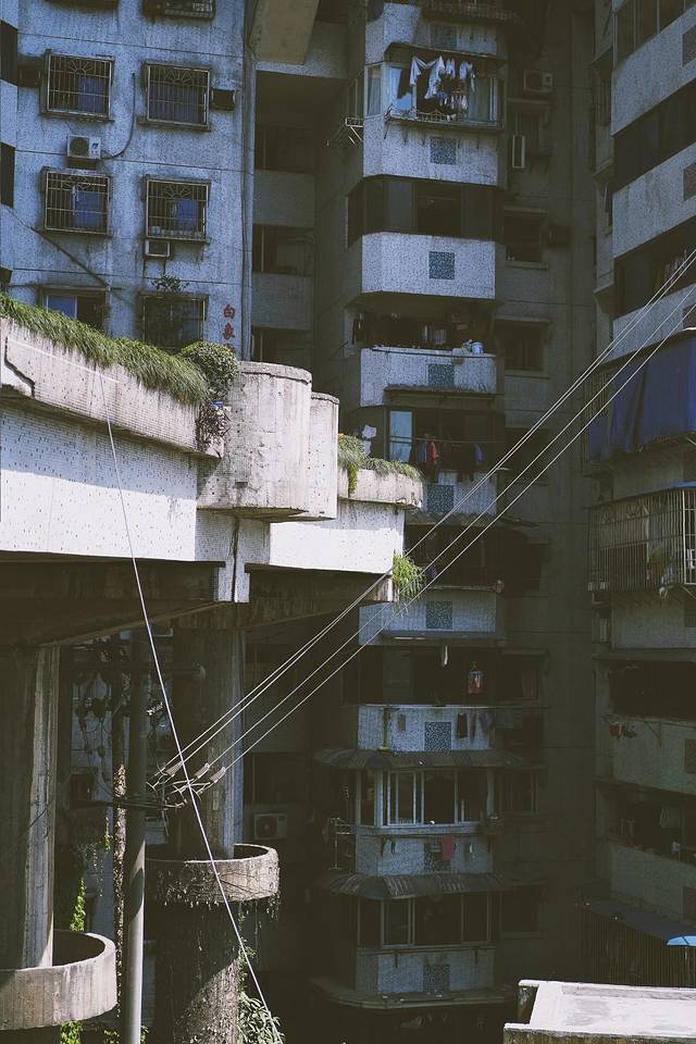 重庆的地形很立体,在这样的地形里,自然也有很立体的建筑。