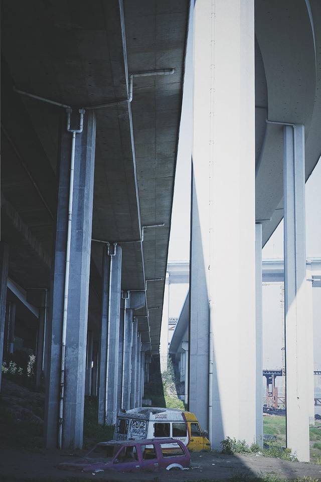 ❗元素:魔幻的立交桥,三辆陷在泥巴里的车(粉色黄色白色,色彩很适合拍照),远处还有钢筋元素。