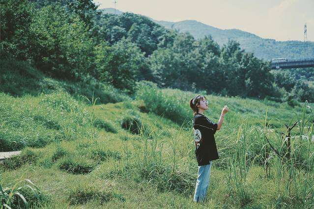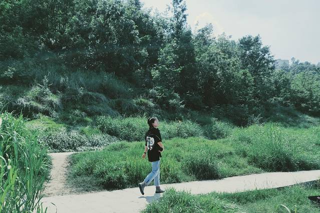📷拍摄:各种绿色的元素与江水、小路、天空、桥交织,坐、蹲、站在江边梯步上,站在草丛,拍摄时江江和桥都拍进入,站在江边的路和芦苇丛旁(秋冬季应该更好看,到时候再来拍一组)