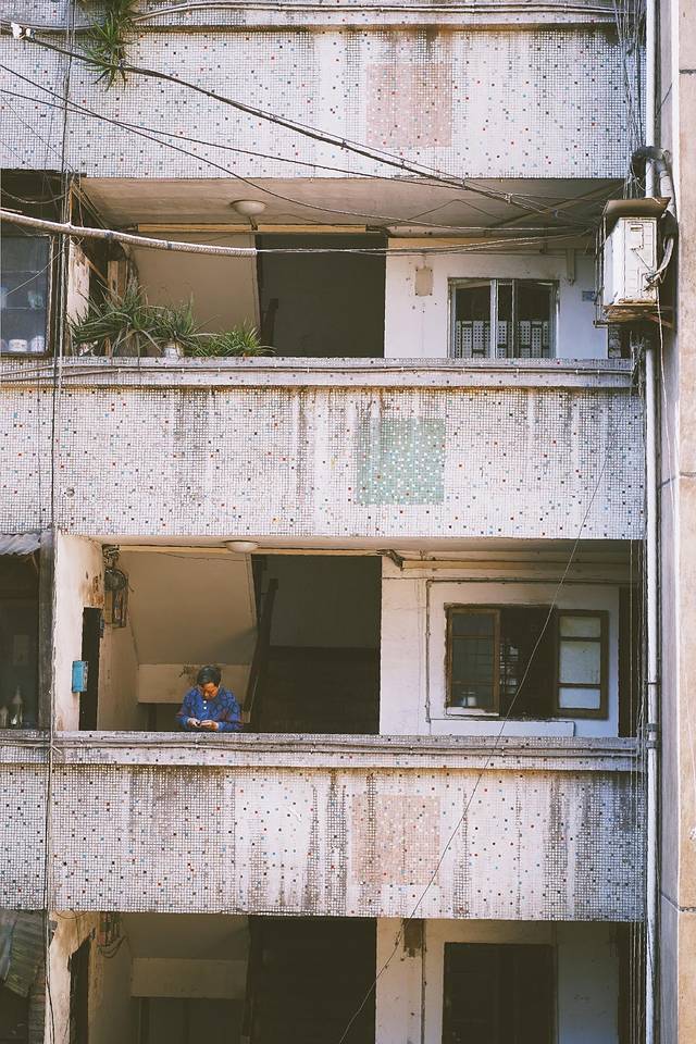 在白象街旁边就是白象居,老旧的民居也有着魔幻重庆立体的意味,从白象街往下去长滨路,沿着阶梯依山而建的就是白象居,楼层很高,但是没有电梯,这里居住着老重庆人。