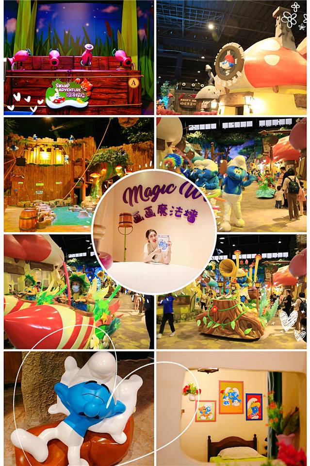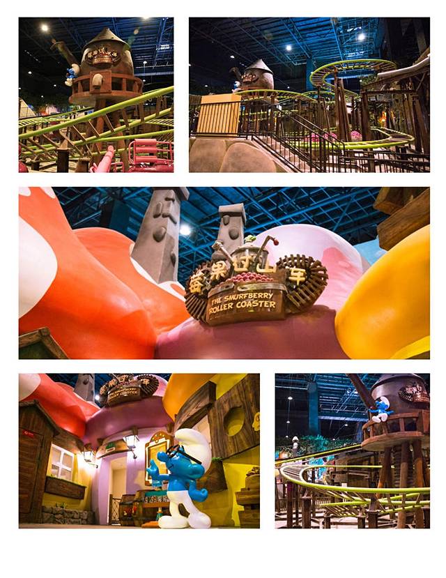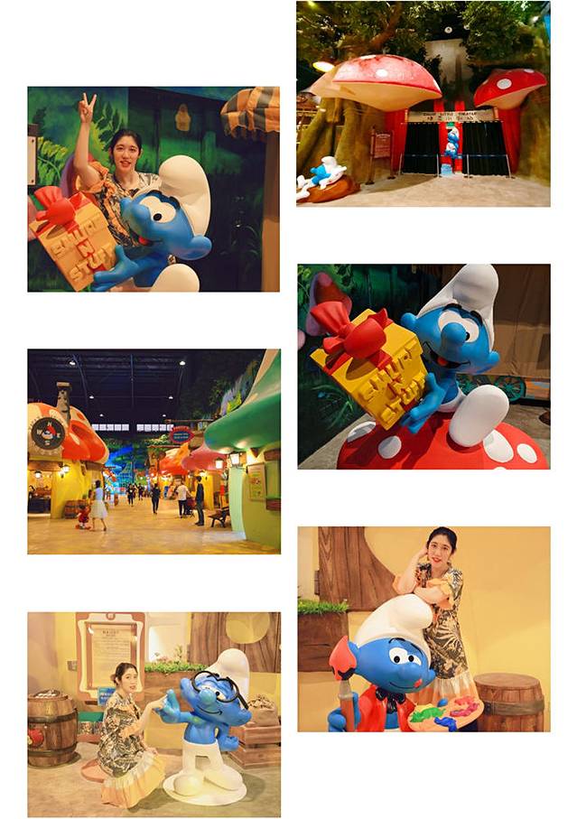来到蓝精灵乐园就仿佛坐着时光机器回到了童年,耳中响起那首耳熟能详的蓝精灵之歌。森林中坐落着大大小小颜色不一的蘑菇屋,隐约你能看到几只俏皮的精灵躲在蘑菇屋里像你招手,仿佛来到了一个奇妙的精灵世界。漫步在乐园里,感觉整个人突然缩小了,因为原本小小的精灵们都被放大站在你的身边