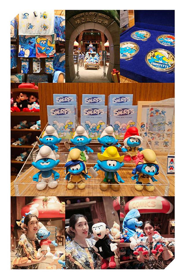 当然除了游玩设备,最让我疯狂的莫过于这里的蓝精灵元素,一大半时间都花在寻找隐藏的蓝精灵和同蓝精灵合影。主题商店当然更不能错过,简直是让我少女心炸裂的地方。可爱的蓝精灵公仔、软软的毛毯,还有限量版纪念币,当然现在网上爆火的盲盒这里也没落下,店员小姐姐说总共有12款盲盒,现在商店里还只拆到了其中的9款~不知道会不会有隐藏款呢