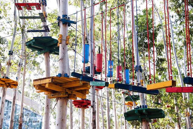 参观后,我们开车到红星生态园,体验心惊肉跳的丛林穿越项目,各种高空项目,看着实在是腿软。各种考验胆量、体力、臂力、平衡的挑战,不少妹子跃跃欲试。
