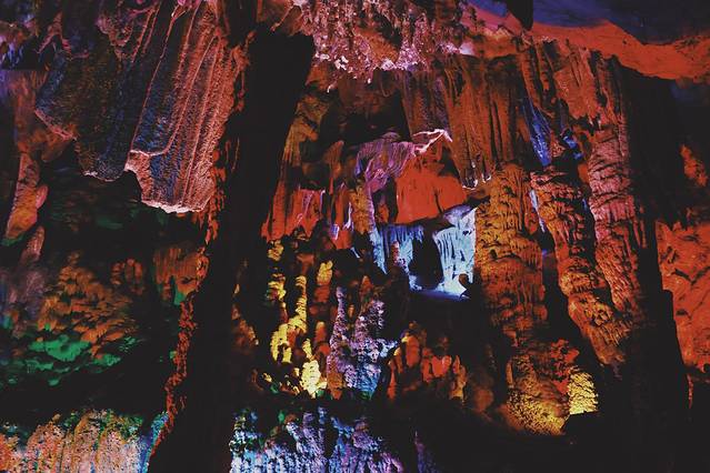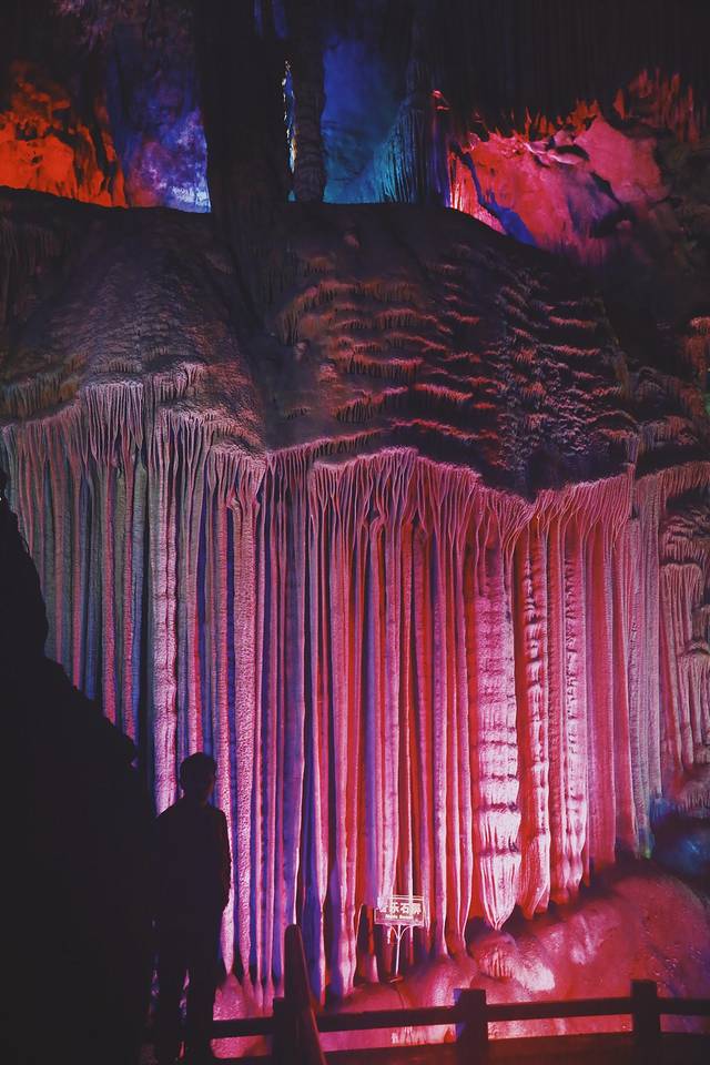 桂林以喀斯特地貌著称,所以有溶洞这个奇特的景观不足为奇。若是在桂林市内停留的时间较长,可以去芦笛岩打卡。Pom Pom第三天的行程都在阳朔,在就近原则的驱使下,选择了银子岩。