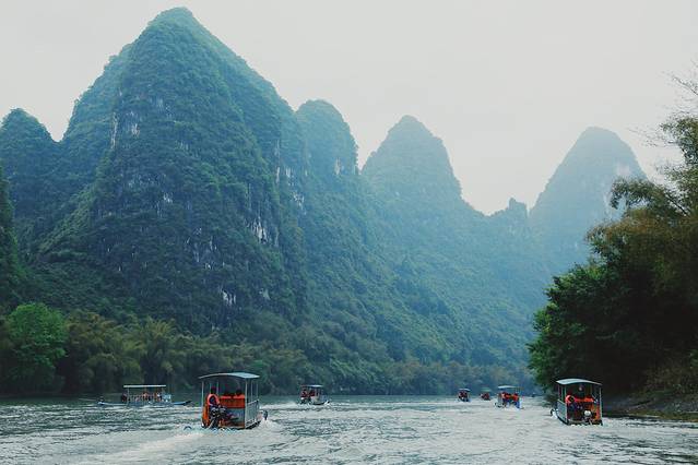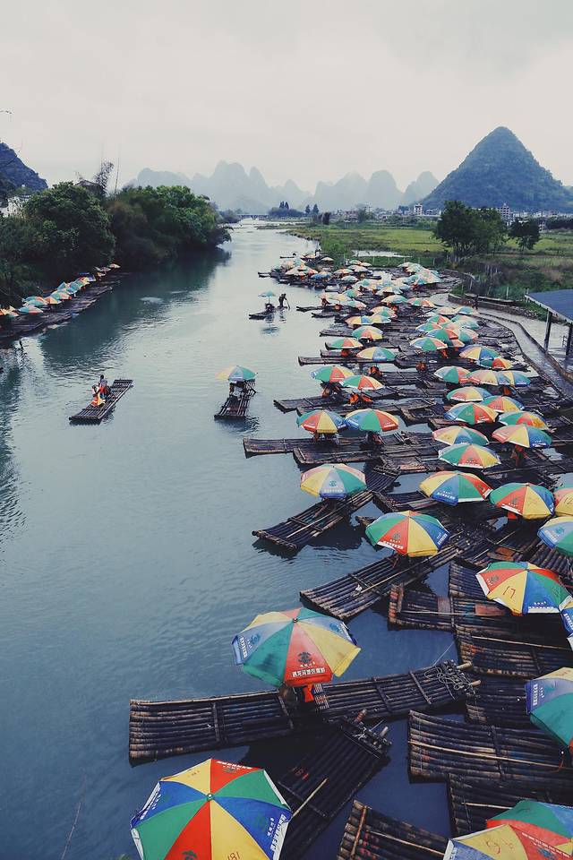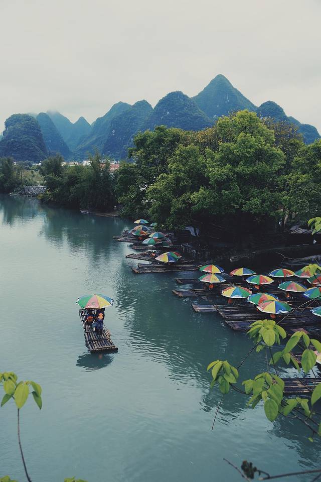 喇叭逼逼叨:虽然是阴雨天,但是桂林的山水依然保持着独特的魅力,朦胧中多了一丝神秘。整个行程中,遇龙河竟是一个宝藏目的地,没有游人如织,只有古老的湍流与需要人力划行的竹筏,在这片自然之地解读宁静与隐逸是极好的选择。
