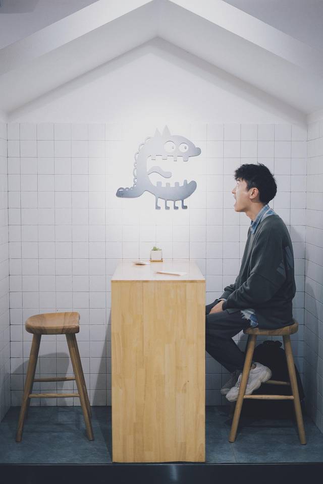 茶魔师是一家超可爱的奶茶店,店铺面积不大,客人倒是不少。每一桌的墙壁上都绘有各种各样的小怪兽图案,让人童心大发。