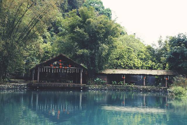 ★停车场旁边就是竹筏的售票点,买票后去黑色的亭子把票给工作人员,就会分配船夫