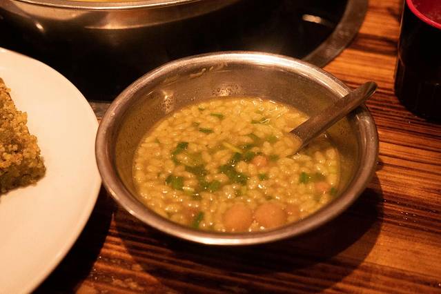 新郭记是桂林的老字号餐馆,油茶是招牌。桂林的油茶用料里的确有茶,并与生姜同煮,再搭配炒米,味道有点苦,有点涩。对于这个奇特的口感,Pom Pom有些不适应,但是于当地人来说,却是不可多得的美味。
