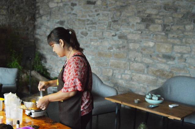 大姐在为我们溶化皂条,我们在那里挑自己喜欢的颜色。