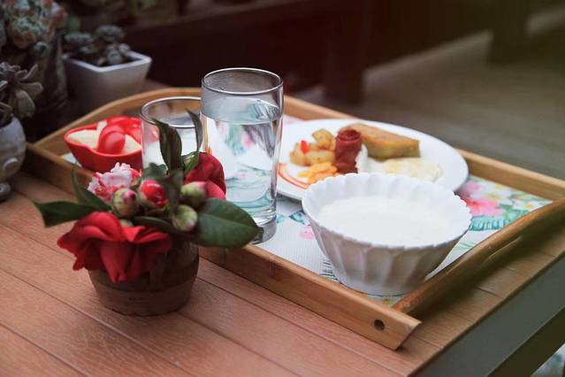简单的早餐因为有了美景和小绿植的衬托,也显得那么的高雅与高格调。