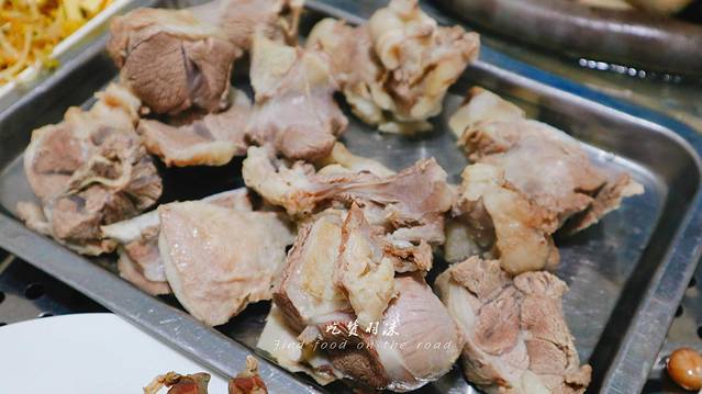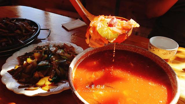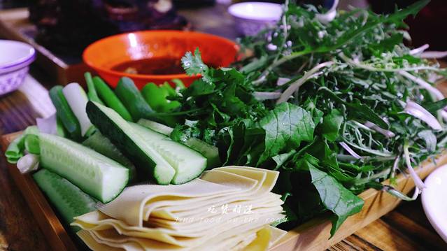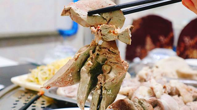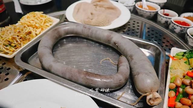 所以我们点了手扒肉+羊肝+羊肚+血肠,最特色的部分是烧柴后加入羊粪,以保证火候的稳定,这样煮出来的食材会软硬适中。