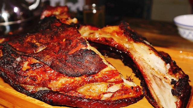 羊腿很大只,需要用小刀顺着羊肉纤维方向割下来,大大的来那么一口,真香,列巴是俄罗斯面包的称呼,吃起来比较煊软,后来品尝过真正的列巴才发现,根本不是一个食物。