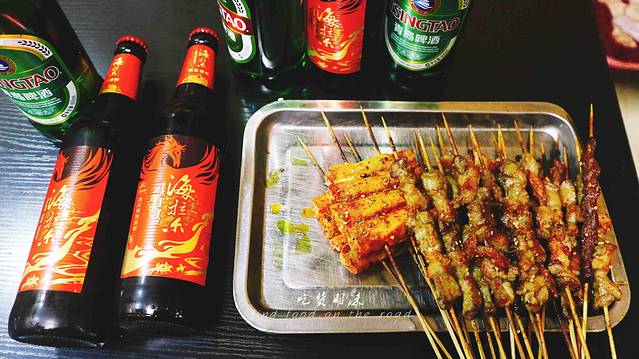因为这边的烧烤食材好,尤其是牛羊肉,都是原生态自然放养,肉质可想而知,有肉就要有酒,所以我们点了肉筋、羊肉串、牛肉串、菜卷、鸡肉串、大筋、BT鸡翅、冷面,海拉尔啤酒。
