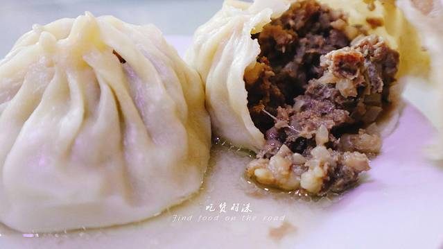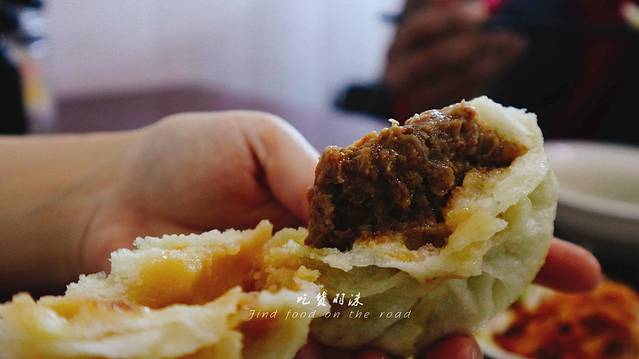 果不其然,用筷子打开包子,油水瞬间溢出,简直太不可思议,一大堆的肉和油水,我心里想:这能吃吗?肯定会很腻,原味吃一口,果然很腻啊,再抹上辣酱吃一口,嗯~这才是应有的味道,牛肉味十足,辣味点缀其中,相当有特色。
