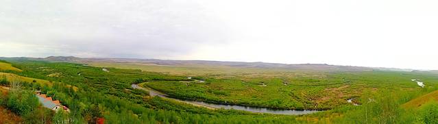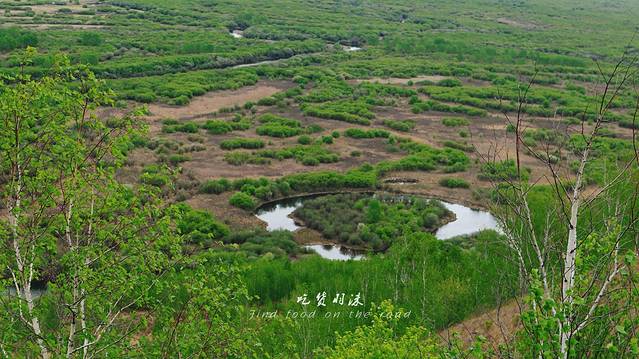 当我从上而下俯瞰额尔古纳湿地全景时,早已将早餐带来的一丝不爽忘记得一干二净了,之前见过湿地,但是从未有过这样辽阔的视野去俯瞰湿地,弯曲的河流、嫩绿色的森林、黄绿色的草原,结合在一起是那么的性感妖娆,无时不刻在撩动你的心弦。