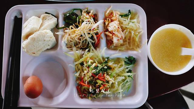 当天早餐就是在酒店吃的,可以说是毫无特色,馒头、炒土豆丝、咸菜,粥,哦,对了,这边有一款咸菜属于特色,吃起来有点臭臭的味道,emmmm,实在是太特色了,体验体验未尝不可,但不可常吃。