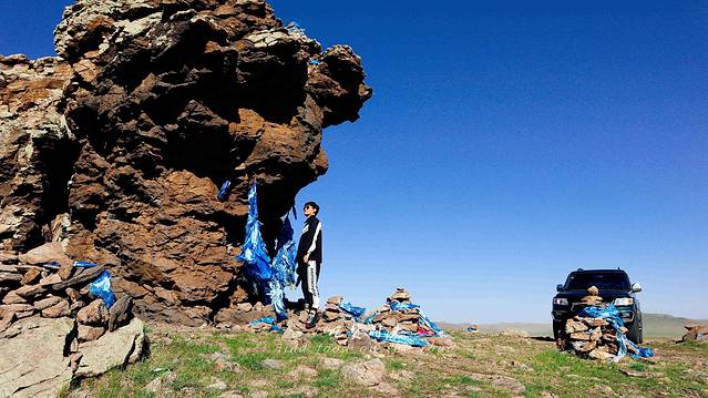由于好奇我们也堆了一个特别小的敖包,可惜没有哈达,也不知有没有讲究,感觉像开玩笑似得,如果你们看到了,别欺负它哦。