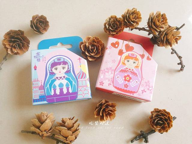 再往里面走,一路也是惊叹连连,突然姐姐大叫了一声,迅速跑到了前面柜台前,我过去一看,噢,原来是买套娃和纸胶带的,难怪姐姐会如此兴奋,看着姐姐真挚的眼神,我说:买,也不贵,一个胶带15元,而且是正版。