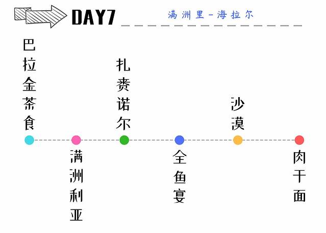 今日行程:巴拉金茶食-满洲利亚-扎赉诺尔博物馆-全鱼宴-沙漠-肉干面