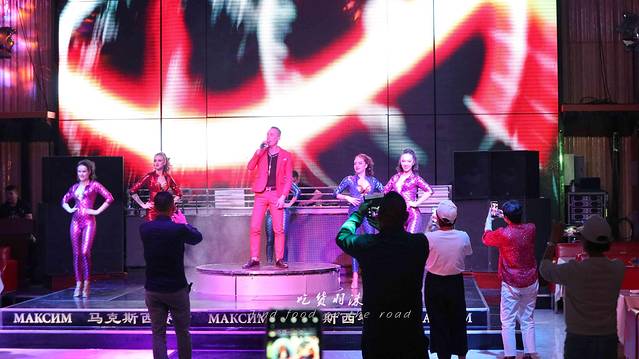 参观完成,先安排住宿,之后我们到了看俄罗斯演绎的地方,这是一个酒吧,它的模式:边吃俄餐边看表演,6人一桌,不满6人拼桌坐,俄餐吃起来还行,但不精致,比起专业俄餐店还是有区别的。