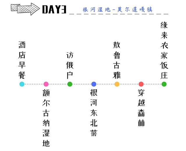 今日行程:酒店早餐-俯拍额尔古纳湿地-访俄户-根河东北菜-敖鲁古雅-穿越森林-缘来农家饭庄