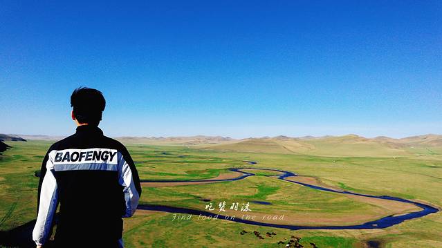 第二站:俯拍莫日格勒河制高点,一路颠簸,行至此处,弯弯曲曲的莫日格勒河尽显眼前,蓝色的河流,黄绿色的草原,视觉上的震撼让我想多呆一会,但是暴躁的狂风让我退缩了,匆匆拍照,留住美丽的瞬间,最后还体验了一把制高点向下俯冲的快感。