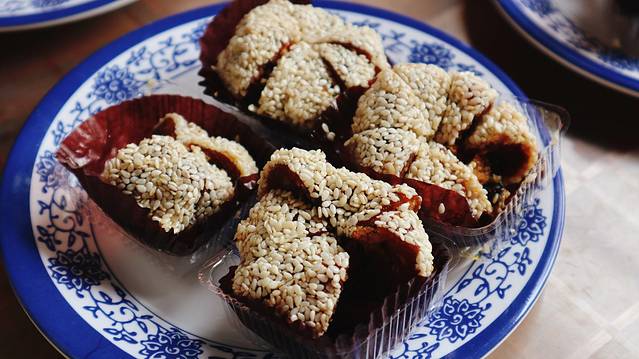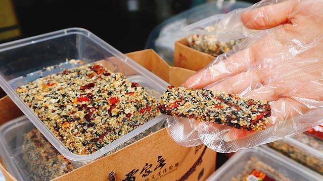 【评价】也不知道是哪里的特色,感觉里面食材很丰富,黑芝麻、麦芽糖、蜂蜜各种食材压实了切块,个人感觉吃着有点腻。