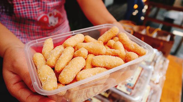 【评价】糯米面做的,上面裹着糖,口感松脆,口味香甜