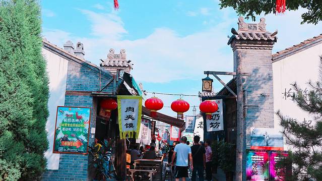 贾街整体风格偏明清时代的建筑,走近到一个大大的牌坊,上面写着【贾家庄】,今天的攻略就走这里开始了