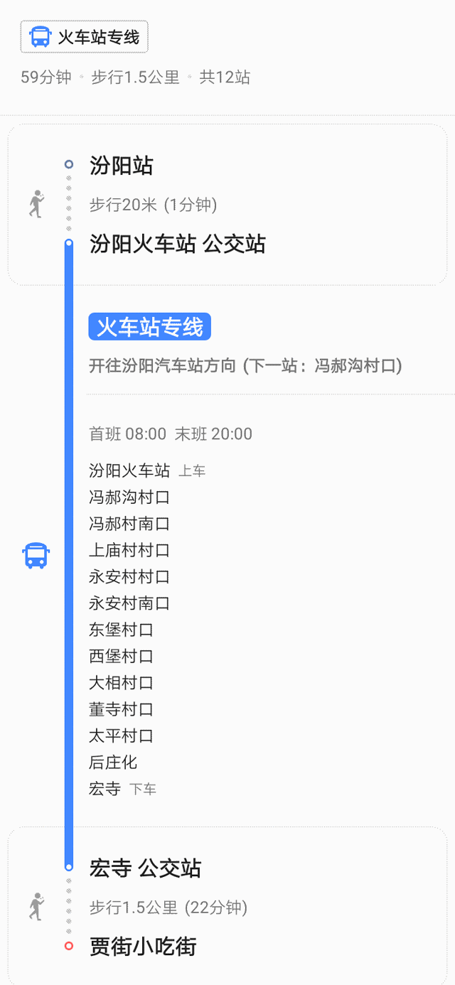 火车站专线(耗时1h,起始:汾阳火车站,到达宏寺,再步行1.5公里)