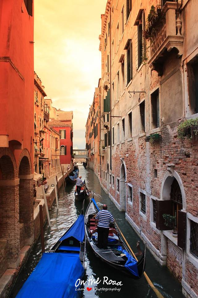 坐着贡多拉穿行在威尼斯的水巷小桥间,穿过叹息桥下