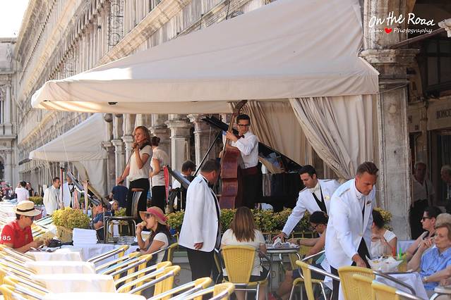 四人乐队演奏那些传统的意大利民歌,供来往的游人休闲欣赏