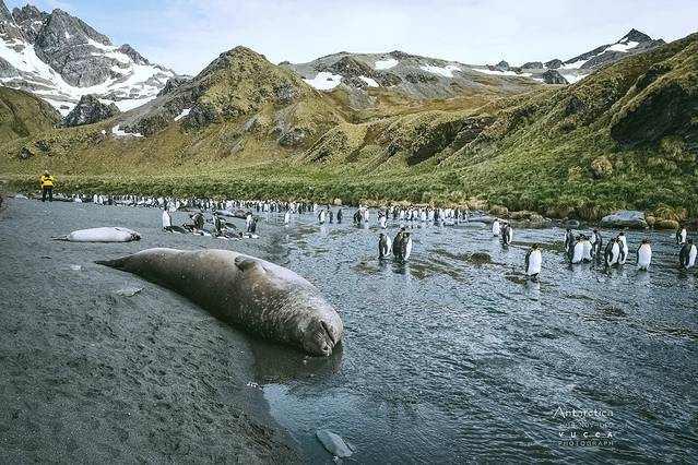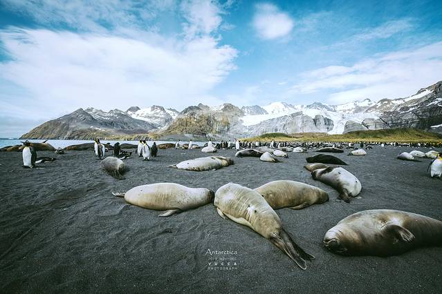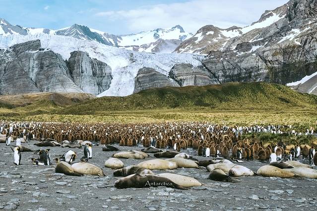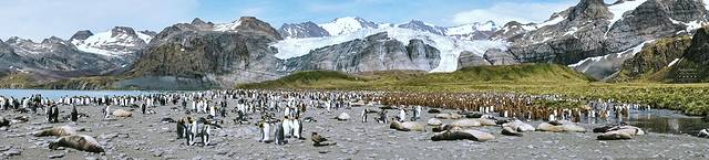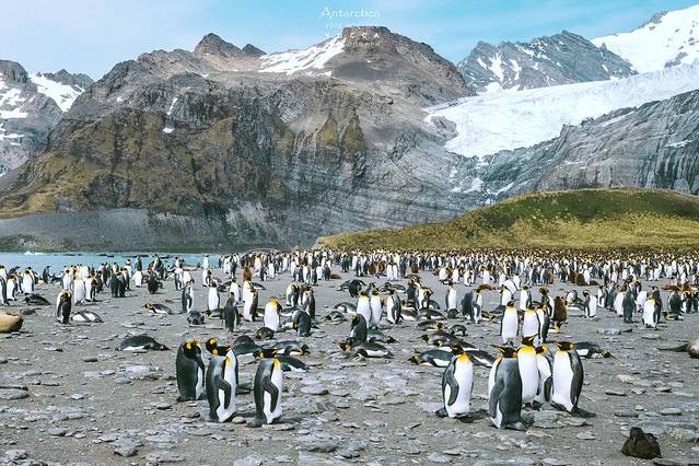 索尔兹伯里平原Salisbury Plain是南乔治亚唯一比较平的海岸,作为南乔治亚第2大的王企鹅繁殖地,堪称鹅山鹅海。