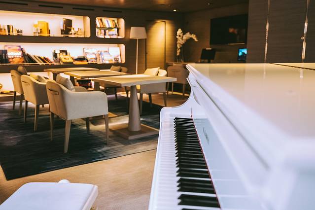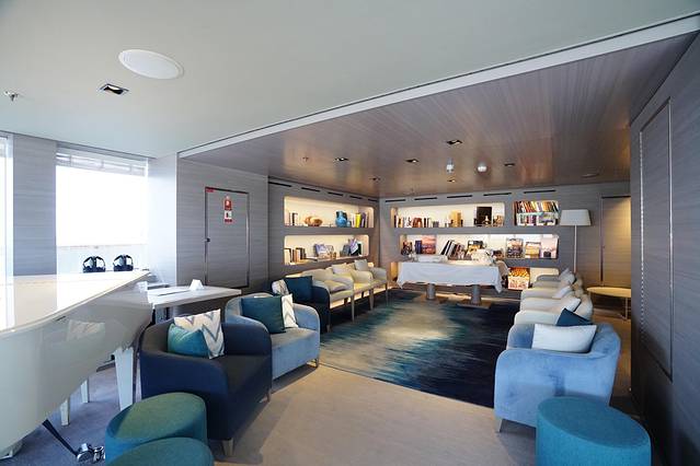 虽然探险队长浪漫地提议,尝试三周与世隔绝的生活,但我们乘坐的星辉号是有免费WIFI的,无法阻止她日理万机。除了讲座和约饭,我们即使同房也难得一见,甚至包括晚间休息的时间,那刚好是国内上班族开始忙碌的时候,她通常会拎着笔记本电脑到6层船头,那儿有个景观Bar,每天23点一刻之前,有钢琴师睡前助眠,之后,基本就只剩下她一个人奋斗到天明。