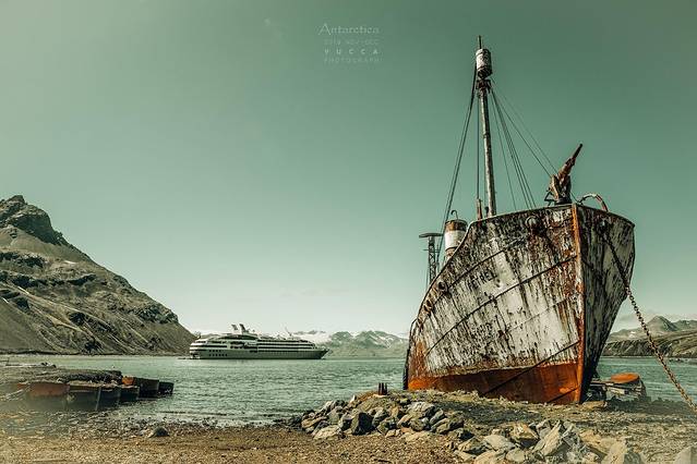 同样在这个地方,1916年4月,英国探险家沙克尔顿Ernest Shackleton迎来了营救行动的曙光。此时距离坚忍号(Endurance)被碎冰击沉,探险队被困在象岛Elephant Island已经过去了5个月。他和选出的5名水手,驾驶一艘残破不堪的救生艇,经历了16天1300公里极端恶劣气候的航行抵达了南乔治亚的南岸,然后耗时36小时翻越高达1300多米的冰山徒步穿越整个岛屿,才来到这个捕鲸站,得到支援,成功返回象岛,最终使全船28人全部平安获救。