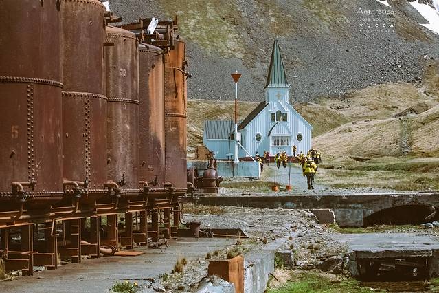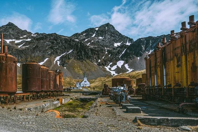 1904年,由挪威人Carl anton Larsen在阿根廷政府资助下建立的古利德维肯捕鲸站,是整个南乔治亚最著名的捕鲸站之一,鼎盛时期有450名工人。直至1966年关闭的62年间,这里超过17万头鲸鱼被捕杀,生产出900万桶鲸油。